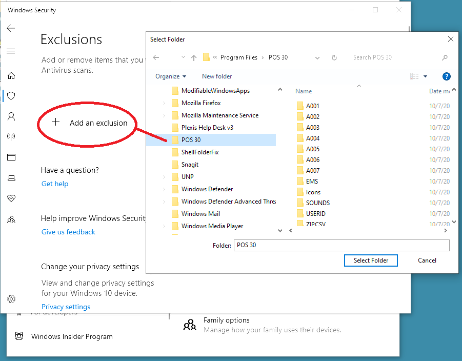 1. Open your Anti-Virus configuration and select Exclude Files and Locations. 2. Browse to C:/Program Files/POS 30 and select it. 3. Browse to C:/Program Files/Common Files/Borland Shared and select it. 4. Click ADD, then SAVE CHANGES. ** If successful you will see the exclusions added to the list. * Consult with qualified computer experts, Microsoft or our Help Desk voice service should you require assistance. |
