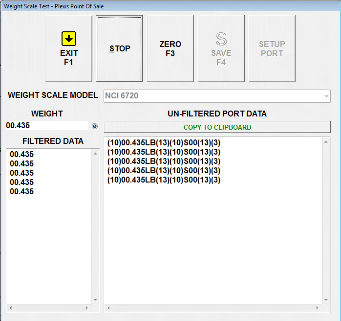 These general instructions and practices are referencing the Metrologic Stratos Series integrated in counter scanner scales. Other scanner / scales are supported that use dual cables and NCI ECR scale protocols. Plexis POS supports many Stand Alone and Integrated Weight Scales connected to an RS232C Serial Port. Use a true RS232C Serial Port Adapter. Many Consumer based home computers that customers try to use in a business environment do not come standard with genuine RS232C serial ports. USB serial ports are not true RS232C. USB to Serial Port converters tend to truncate data depending on the driver and chip set. If you use a USB to Serial converter make sure that it supports true RS232C standards, otherwise the weight scale may not work properly. Point of Sale Business Computers are typically designed to have genuine RS232C serial ports installed and will work perfectly with our supported ECR weight scales. MS2320 Scanner / Scale Hardware Requirements: 1. Plexis POS Supports many Scanner and Scale Models using the NCI and Mettler-Toledo Scale Protocol. 2. DUAL Cables are required, one for the scale and one for the Scanner. 3. The Scale uses a standard RS232 Serial cable. The Scanner can be Keyboard, USB or RS232 Serial. 4. These examples are specific to the Metrologic MS 2x2x Series in counter Scanner / Scales. 5. MS2320 Stratos Dual Cable Scanner Scale Setup Sheet. (click here) * Single Cable Scanner / Scale interfaces are NOT supported. Consult our Supported Hardware page for details HERE. Setting Up the MS2320 Weight Scale: Test the weight scale through the Plexis POS interface by choosing from the Main System Menu: Utilities, Diagnostics then Weight Scale. Configure the Weight Scale port so that it matches the proper Serial Port Number. Press F2 and verify you have had a successful test. Once tested choose Save. |