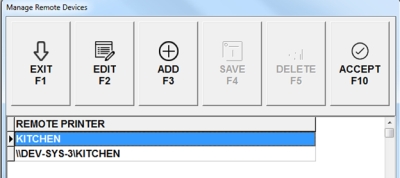 You must add Remote or Kitchen printers to the device list in the Inventory Module. After adding the remote device then EACH item that needs to be printed to the remote or local printer must be added under the inventory item record. If you are using Plexis POS on a multi-station network follow these steps on a WORKSTATION and not the SERVER. Step 1: From the Main Menu access Modules, Inventory Control, Inventory Items. Then access Inventory Module, Remote Devices, Kitchen Printers.